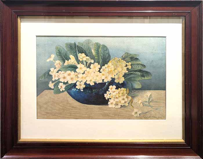 Ethel M Kitson 1894-1964 Bradford EK03 ‘Primroses’ watercolour fraed to 55x45cm £180