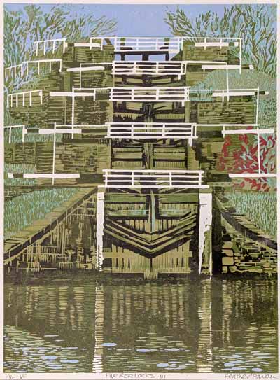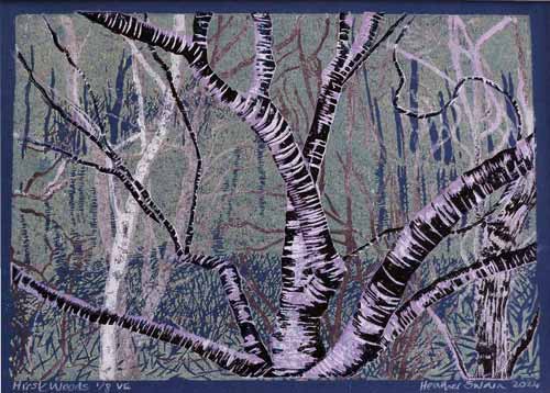 Heather , who works from her home studio in Baildon is passionate about printmaking, with lino-cutting as her most common technique. Subject matter varies from careful studies from nature through to more abstracted works. Although the prints are produced as small ‘limited editions, her tendency to experiment and vary colours and techniques during printing often results in subtle differences within editions.