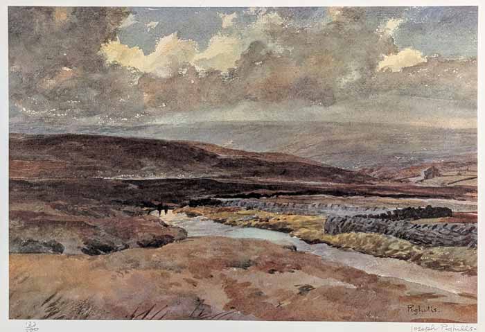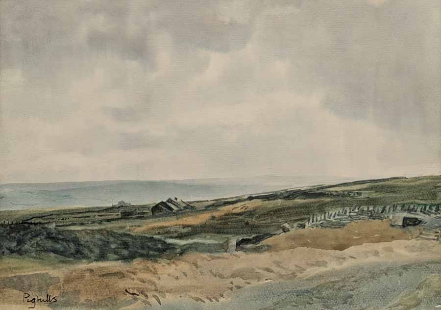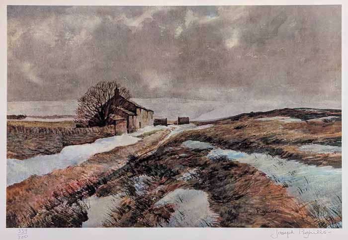 Joe was born and lived his whole life in Marsh near Oxenhope, West Yorkshire. Attending evening classes at Keighley College of Art, he developed his natural talent, built a considerable reputation as a ‘painter’s painter’ and found commercial success in his later years. Best known for his stormy views of the moorland near his home. A recent publication: ‘Faith and Art; The Life and Work of Joseph Pighills’ by Colin Neville provides an insight to his life and art. When his son, John, visited the Gallery he recalled going out with his father in stormy weather (you rarely see blue skies in his work) to protect the in-progress painting with an umbrella!
